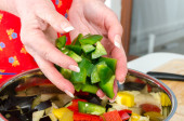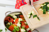 Zdjęcie "Dodając kawałki czerwonej papryki do rondla" może być wykorzystywane do celów osobistych i komercyjnych zgodnie z warunkami zakupionej licencji Royalty-free. Obraz jest dostępny do pobrania w jakości wysokiej rozdzielczości do 5760x3840.