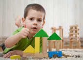 chłopcy gry odrobina bloki