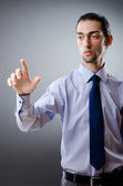 Biznesmen wciskający wirtualne przyciski