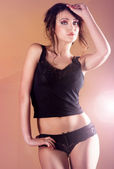 Zmysłowa blondynka pani w bieliźnie.