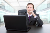 biznesmen siedzi przy biurku