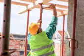 Zdjęcie "Pracownik budowlany sprawdza normy budowlane, aby upewnić się, że każda część konstrukcji spełnia." może być wykorzystywane do celów osobistych i komercyjnych zgodnie z warunkami zakupionej licencji Royalty-free. Obraz jest dostępny do pobrania w jakości wysokiej rozdzielczości do 5760x3840.