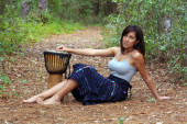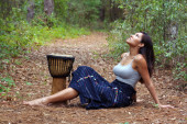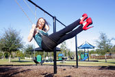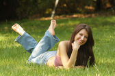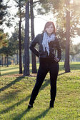 Piękna młoda kobieta nachylając się na drzewie (3)
