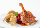 pieczona kaczka z kapustą kiszoną i kluski ziemniaczane