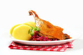 pieczona kaczka z kapustą kiszoną i kluski ziemniaczane