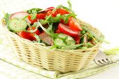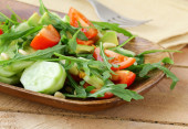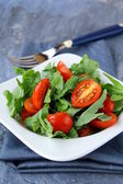 Zdjęcie "Sałatka z rukolą i pomidorami koktajlowymi" może być wykorzystywane do celów osobistych i komercyjnych zgodnie z warunkami zakupionej licencji Royalty-free. Obraz jest dostępny do pobrania w jakości wysokiej rozdzielczości do 5760x3840.