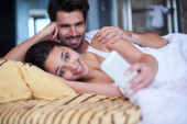 Zdjęcie "Para relaks i zabawę w łóżku" może być wykorzystywane do celów osobistych i komercyjnych zgodnie z warunkami zakupionej licencji Royalty-free. Obraz jest dostępny do pobrania w jakości wysokiej rozdzielczości do 5760x3840.