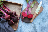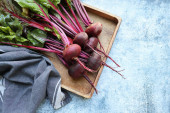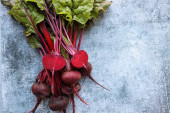 Zdjęcie "Świeże buraki z liśćmi na niebieskim tle. Zdrowe jedzenie. Widok góry. Wolne miejsce na tekst." może być wykorzystywane do celów osobistych i komercyjnych zgodnie z warunkami zakupionej licencji Royalty-free. Obraz jest dostępny do pobrania w jakości wysokiej rozdzielczości do 5760x3840.