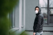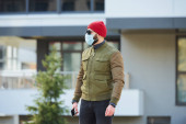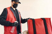 Zdjęcie "Dostawca w czarnej masce niesie duże zamówienie do tętniącego życiem biurowca w dzień." może być wykorzystywane do celów osobistych i komercyjnych zgodnie z warunkami zakupionej licencji Royalty-free. Obraz jest dostępny do pobrania w jakości wysokiej rozdzielczości do 5760x3840.