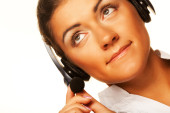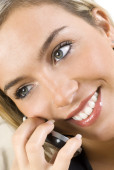 Portret uśmiechniętej kobiety biznesu mówiącej przez telefon