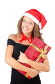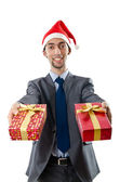 Pracownik biurowy oferujący pudełko na prezenty na białym