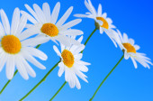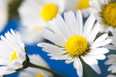 dziki camomiles na błękitne niebo.
