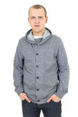 pełnej długości portret uśmiechnięty człowiek biznesu w isola niebieska koszula