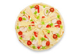 Pyszne wegetariańskie pizza z pomidorami, pieczarkami i oliwkami