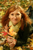 uśmiechający się zadowolony dziewczyna w parku jesień