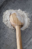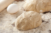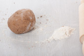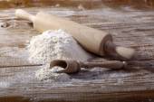ciasto z wałkiem na stole.