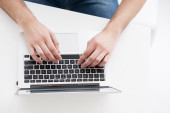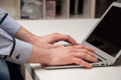ręce człowieka pisania na laptopa. Internet surfing. Programowanie kodu