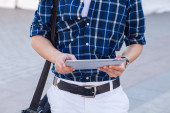 turysta z mobilny tablet pc i telefonów