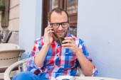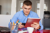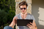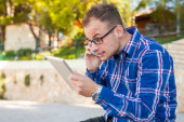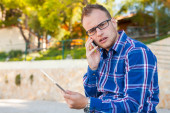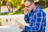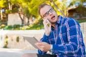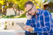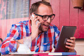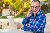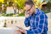 turysta z mobilny tablet pc i telefonów