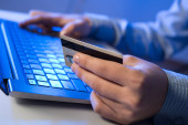 człowiek za pomocą karty kredytowej