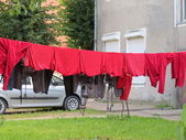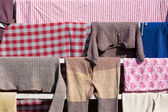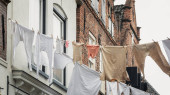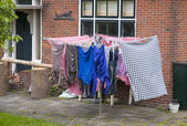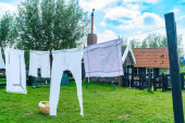 pranie wisi na ulicę w zabytkowej wiosce rybackiej, netherl