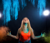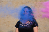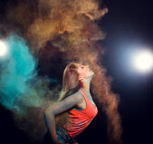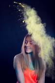 zestaw z dziewczyna z kolorowym proszkiem wybuchające wokół niej i do th