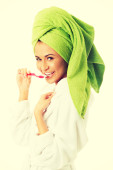 Zdjęcie "kobieta w szlafrok szczotkowanie zębów" może być wykorzystywane do celów osobistych i komercyjnych zgodnie z warunkami zakupionej licencji Royalty-free. Obraz jest dostępny do pobrania w jakości wysokiej rozdzielczości do 5760x3840.