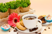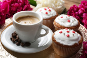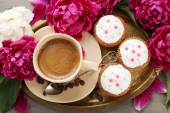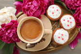 Zdjęcie "filiżankę kawy, babeczki i piwonia kwiat" może być wykorzystywane do celów osobistych i komercyjnych zgodnie z warunkami zakupionej licencji Royalty-free. Obraz jest dostępny do pobrania w jakości wysokiej rozdzielczości do 5760x3840.