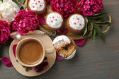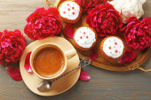 Zdjęcie "filiżankę kawy, babeczki i piwonia kwiat" może być wykorzystywane do celów osobistych i komercyjnych zgodnie z warunkami zakupionej licencji Royalty-free. Obraz jest dostępny do pobrania w jakości wysokiej rozdzielczości do 5760x3840.