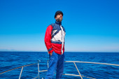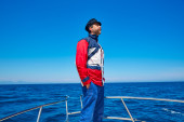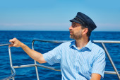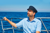 broda człowiek czapka marynarza żeglarstwa morze ocean w łodzi