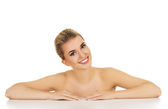 portret roześmiany nagie kobiety skierowana w górę