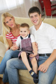 szczęśliwą rodzinę młodych zabawy w domu