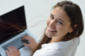 Zdjęcie "Kobieta, relaksu i pracy na komputerze przenośnym" może być wykorzystywane do celów osobistych i komercyjnych zgodnie z warunkami zakupionej licencji Royalty-free. Obraz jest dostępny do pobrania w jakości wysokiej rozdzielczości do 5760x3840.
