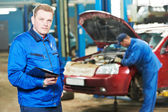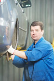 Auto mechanik wkręcania koła samochodu przez klucza