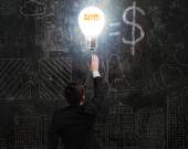 Zdjęcie "biznesmen dotykając jasne żarówki oświetlony ciemności bazgroły" może być wykorzystywane do celów osobistych i komercyjnych zgodnie z warunkami zakupionej licencji Royalty-free. Obraz jest dostępny do pobrania w jakości wysokiej rozdzielczości do 5760x3840.