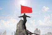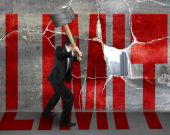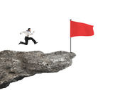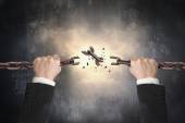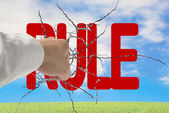 biznesmen posiadania młot uderza czerwony reguły słowo na konkretne wal