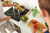 Zdjęcie "W eleganckiej kuchni, przystojny młody mężczyzna miesza świeże zieleni i warzyw, obejmując zdrowy styl życia." może być wykorzystywane do celów osobistych i komercyjnych zgodnie z warunkami zakupionej licencji Royalty-free. Obraz jest dostępny do pobrania w jakości wysokiej rozdzielczości do 5760x3840.