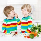 Zdjęcie "Dwa małe dziecko chłopców jedzenie spaghetti w domowej kuchni." może być wykorzystywane do celów osobistych i komercyjnych zgodnie z warunkami zakupionej licencji Royalty-free. Obraz jest dostępny do pobrania w jakości wysokiej rozdzielczości do 5760x3840.