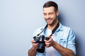 Zdjęcie "mężczyzna zdjęć z aparatu fotograficznego" może być wykorzystywane do celów osobistych i komercyjnych zgodnie z warunkami zakupionej licencji Royalty-free. Obraz jest dostępny do pobrania w jakości wysokiej rozdzielczości do 5760x3840.