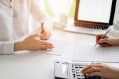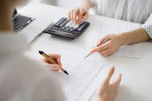 Zdjęcie "Kobieta księgowa liczenia i dyskusji podatków z klientem lub kolegą podczas korzystania z kalkulatora i laptopa komputera. Zespół audytu przedsiębiorstw." może być wykorzystywane do celów osobistych i komercyjnych zgodnie z warunkami zakupionej licencji Royalty-free. Obraz jest dostępny do pobrania w jakości wysokiej rozdzielczości do 5760x3840.