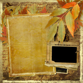 ilustracja dokumentów projektu w stylu scrapbookingu z liści i blan