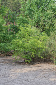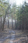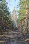 szara piaszczysta droga wśród drzew z kolorowymi liśćmi w jesiennym lesie