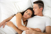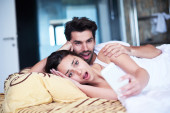 Młoda para ma dobry czas w sypialni