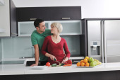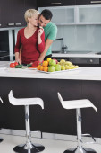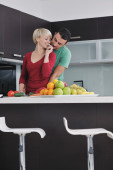 młoda para bawić się w nowoczesnej kuchni