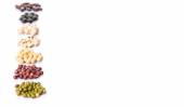 podbite oko grochu, fasoli mung, fasola adzuki, soi, czarną fasolą i czerwona fasola na białym tle