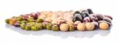 podbite oko grochu, fasoli mung, fasola adzuki, soi, czarną fasolą i czerwona fasola na białym tle