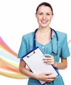 Zdjęcie "uśmiechnięta kobieta lekarz przytrzymanie schowka" może być wykorzystywane do celów osobistych i komercyjnych zgodnie z warunkami zakupionej licencji Royalty-free. Obraz jest dostępny do pobrania w jakości wysokiej rozdzielczości do 5760x3840.