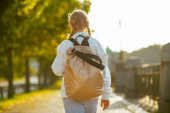 Zbliżenie na fitness młoda kobieta spaceru po mieście