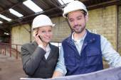 pracownik pokazuje do inspektora bezpieczeństwa systemu tworzenia