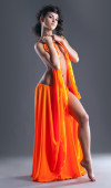 Piękna tancerka leżał w tradycyjnych strojach arabskich